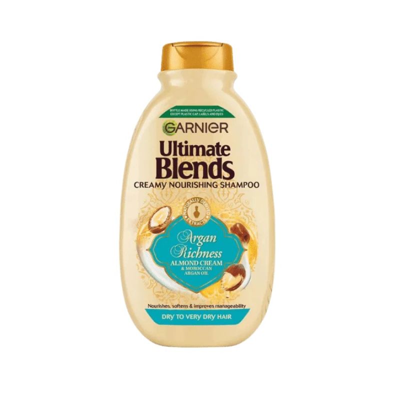 Garnier Ultimate Blends Creamy Nourishing Shampoo 400ml. Say goodbye to dry, dull hair and hello to luxuriously soft and healthy locks with every wash. This creamy shampoo is enriched with a blend of natural ingredients like almond cream and Moroccan argan oil, known for their moisturizing properties. As you lather up, the rich formula deeply nourishes each strand from root to tip, leaving your hair feeling silky smooth and incredibly manageable.
