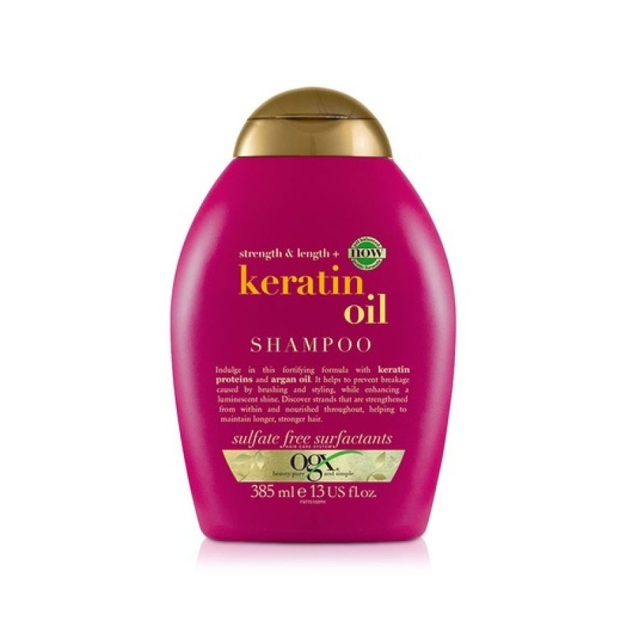 OGX Keratin Oil Shampoo is anti-frizz Sha helps repair damage and split ends caused by brushing and styling. Blended with keratin proteins to help fortify strands, increase elasticity and prevent breakage.