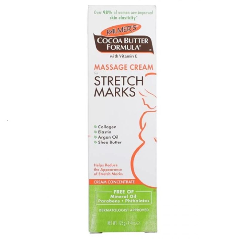 This formula massage cream for stretch marks is specifically formulated to help prevent and reduce the appearance of stretch marks. Made from 100 percent pure cocoa butter and enriched with vitamin e, collagen and Elastin for unparalleled results.